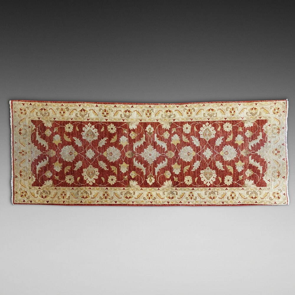 Description / Expertise: Afghan Ziegler Cream and Red ground Hand Woven Woolen Runner - 79'' x 31.5''