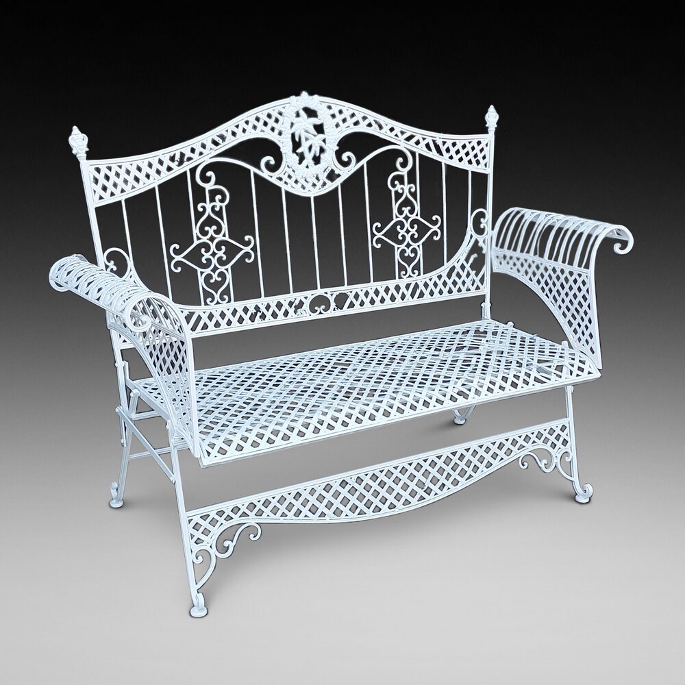 Decorative Cast Metal Two Seater Garden Bench - of filigree seat, classical back and scroll arms, including waterproof cushion - 54"w x 22"d x 41"h (17" to the seat