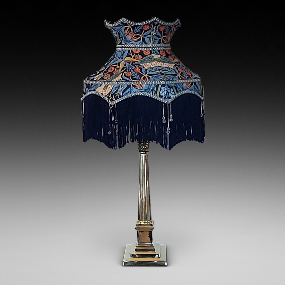 Late 19thC Brass Oil Lamp with Corinthian Column - on stepped square pedestal base - converted to electric - Baxendale & Co, Manchester founded 1863 - 18"diam x 35"h - - all lights and lamps have been rewired with authentic corded flex, fitted with either foot switch or finger clicker switch and are Pat tested