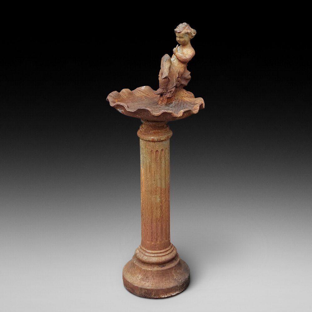 Victorian Cast Iron Bird Bath, with seated cherub and fluted classical column - 13"w x 16"d x 37"h (26" to the bath)